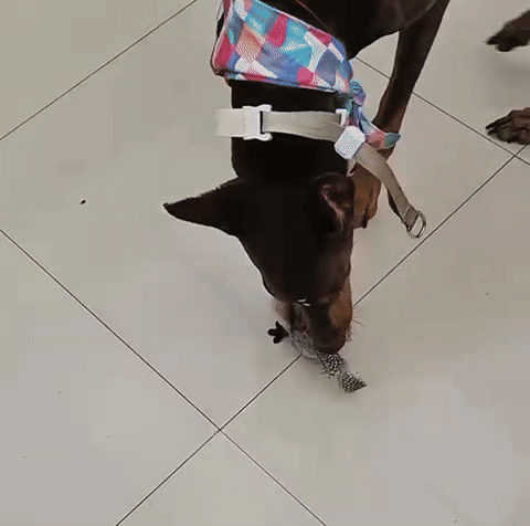 Dice que su peludo reacciona con curiosidad y emoción ante los movimientos y sonidos realistas del pajarito.